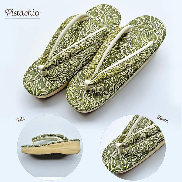菱屋の履物は、履いて間に段々と足に馴染んでくる事を前提に、予めスゲ加減を少々キツ目に調整いたしております。 その為、履き始めはきつく感じられる場合がございますが、二度三度と履いて頂く事で、鼻緒が足に馴染み、楽に履いて頂ける様になってまいります。